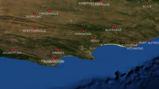 In other cases, raster data can be computed. For example an insurance company may take police crime incident reports and create a country wide raster map showing how high the incidence of crime is likely to be in each area. Meteorologists (people who study weather patterns) might generate a province level raster showing average temperature, rainfall and wind direction using data collected from weather stations (see Fig. 6.5). In these cases, they will often use raster analysis techniques such as interpolation (which we describe in Topic Spatial Analysis (Interpolation)).