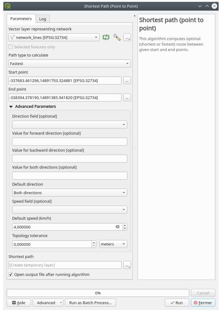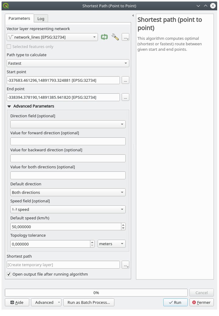 The shortest path tools provide ways to calculate either the shortest or the fastest path between two points of a network, given: