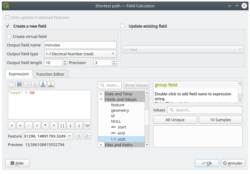The cost field contains the value according to the speed parameter you have chosen. We can convert the cost field from hours with fractions to the more readable minutes values.