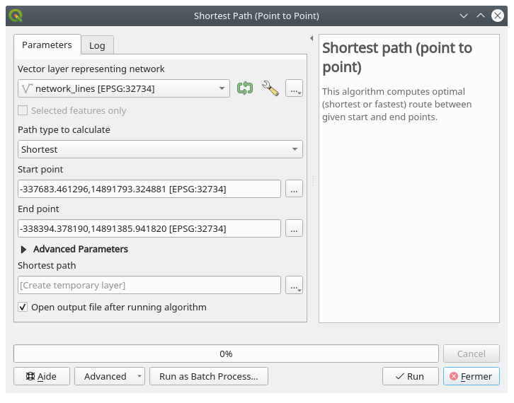 A new line layer is created representing the shortest path between the chosen points. Uncheck the