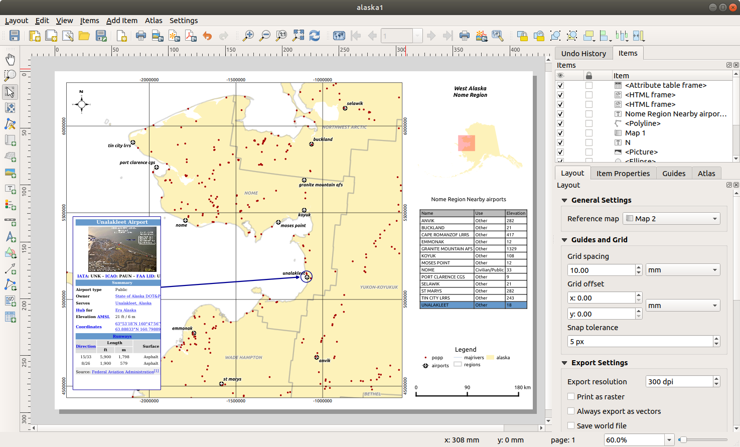 Once the atlas settings have been configured, and layout items (map, table,