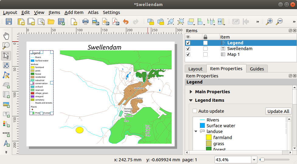 Присвойте новому макету имя Свеллендам Swellendam и кликните OK.