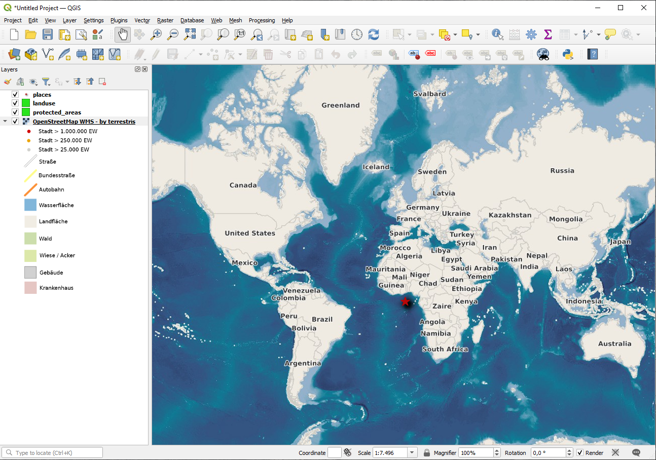 После того как вы добавили неактивную карту в качестве фона, вы будете рады узнать, что вы также можете добавлять объекты (например, другие векторные слои, которые вы добавляли ранее). Добавление объектов с удаленных серверов возможно с помощью веб-сервисов объектов (WFS). Это тема следующего урока.