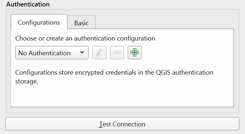QGIS can store credentials under authentication configurations. Each configuration safely saves your login details in a portable encrypted database, so you can use them again without typing them every time. These configurations can be safely referenced by their ID tokens in projects and settings.
